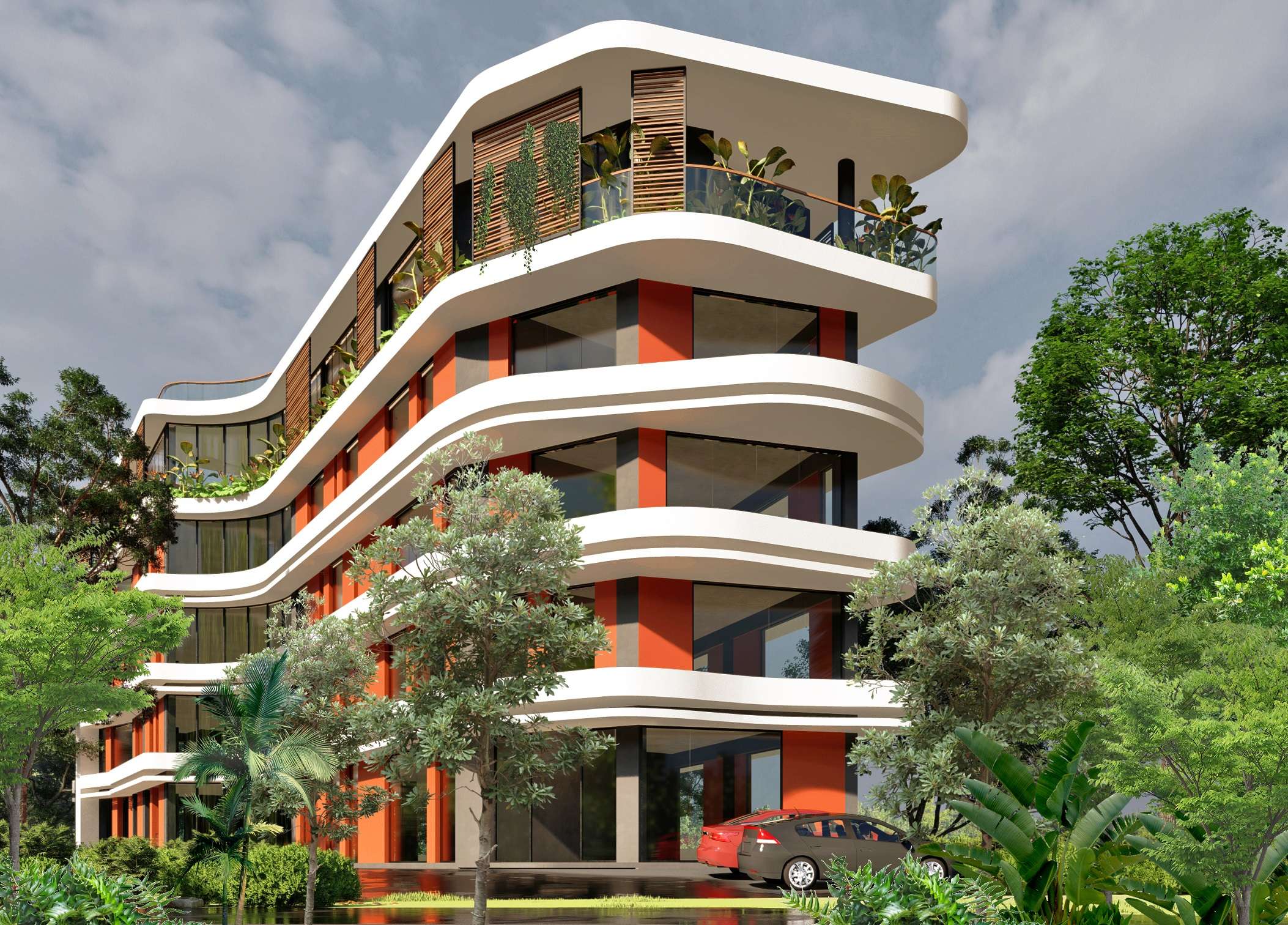 This commercial space along the main Infopark road is designed on a linear plot and makes optimum usage of the plot. The design creates a dynamic form which creates a unique identity for the project. Monastery of Architecture